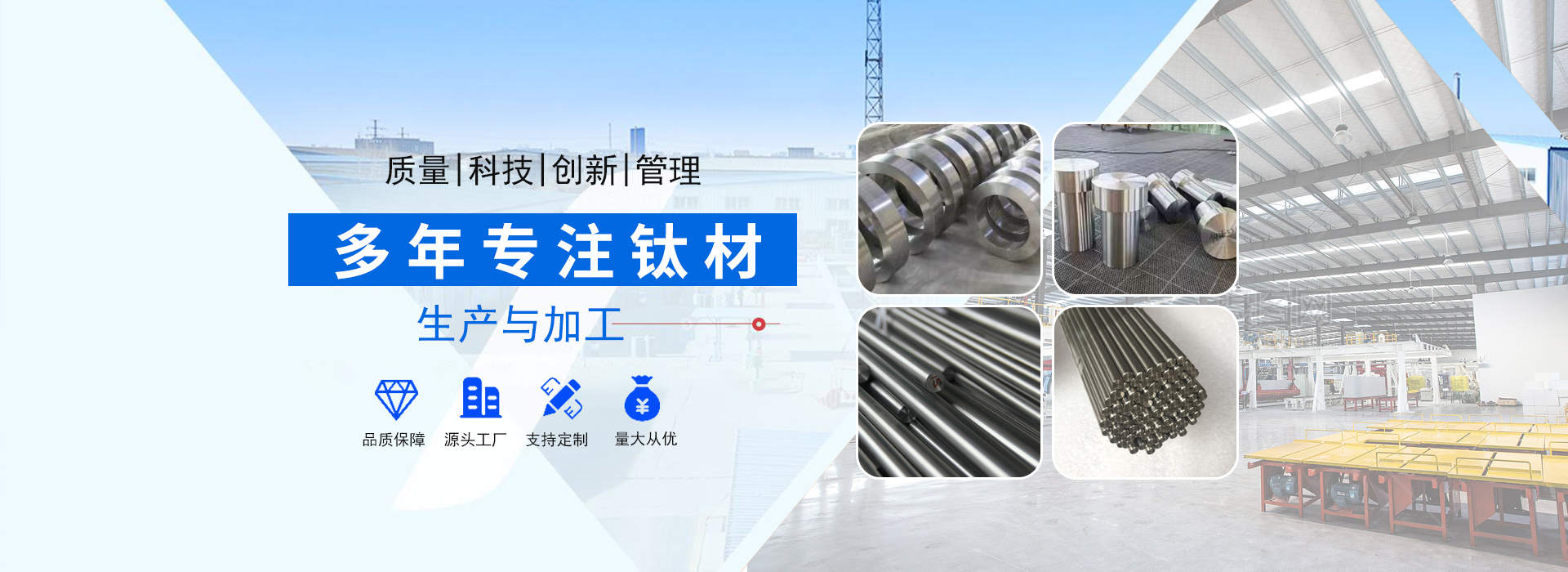 陜西辰軒鑫達金屬材料有限公司位于具有“中國鈦城”之稱的陜西寶雞高新技術開發區,公司依托“中國鈦城”的雄厚的行業資源,強大的有色金屬科研及制造實力,完整的有色金屬工業制造產業鏈,形成了一套完整的生產流程,公司主要從事有色金屬的加工,生產及銷售及工業及民用鈦、鎳、鉬及其他稀貴金屬材料的深加工研究生產及國際、國內貿易,集有色金屬材料銷售、產品設備制造及新產品開發為一體。主要以生產鈦材及其他金屬材料為主,主導產品有:鈦錠、鈦棒、鈦絲、鈦板、鈦法蘭等以及其他有色金屬材料:鋯板、鋯管、鋯棒、鋯鈀、鋯餅、鈮管、鈮棒、鉭板、鉭棒、鉭管等有色金屬。產品廣泛應用于化工、冶金、石油、紡織、醫藥、輕工、環?!ぁぁ?/p> 查看更多+